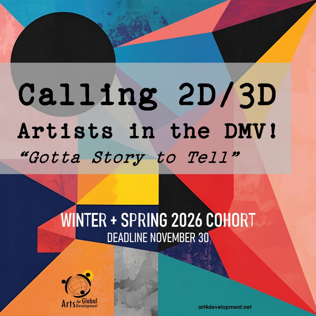 At Arts for Global Development (Art4Development.Net) we bring a multi-disciplinary, cross-sectoral and participatory approach to development and engage individuals and organizations worldwide in creating and maintaining arts-infused positive impact. We are a registered 501(c)3 educational nonprofit organization that champions the use and application of the arts and culture to challenge societal inequities and environmental degradation.